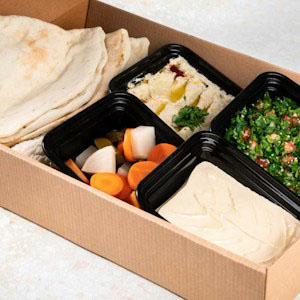 2 Hommus, 1 Salad, 1 Pickles, 5 breads